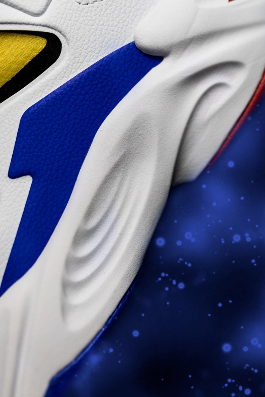 这款球鞋选用了近年来流行的老爹鞋造型,配色方案同样是元祖高达配色。