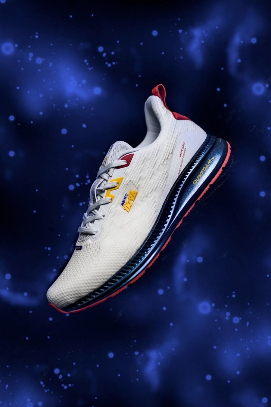 金属质感涂装的中底搭载 QU!KFOAM 科技,材料更轻更软弹。