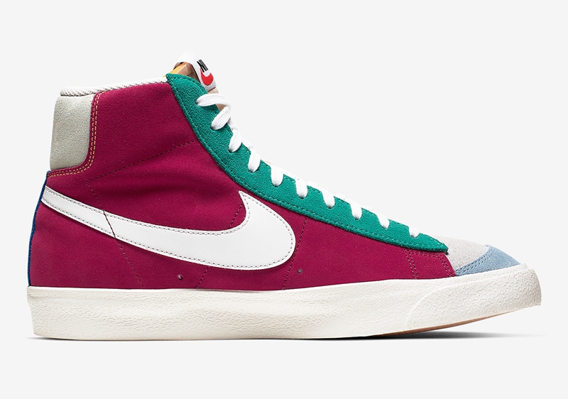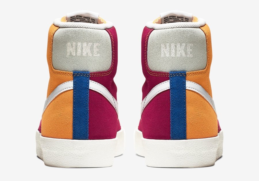 鞋面由麂皮材质打造,并采用大面积的多元色彩拼接示人,几种色调完美的结合在一起,亮眼又吸睛。侧面 Swoosh 采用白色示人,搭配灰色麂皮后跟点缀,不仅质感十足,还具有很强的时尚气息。