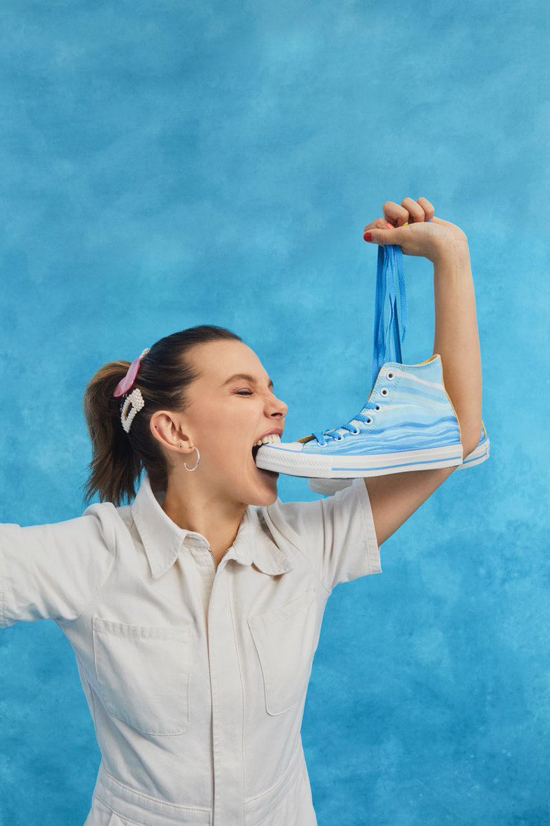近日 Converse 也带来了与其相关的鞋款,但并非与这部剧联名,而是打造了女主小 11 的扮演者 Millie Bobby Brown 的专属配色 “Millie By You” 系列,将于本周迎来发售。