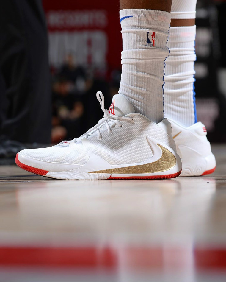 勒布朗上脚特别配色 Travis Scott x Nike Air Force 1 与浓眉一同现身场边,唐斯的万圣节 OFF-WHITE x Nike Blazer 细看内侧文字疑似错版,被誉为最强新秀的锡安分别上脚 Nike 与 Puma 球鞋,他将签约哪家运动品牌,依然是大家好奇的话题!而字母弟加盟独行侠上脚 Nike Freak 1 PE 同样让人眼前一亮!