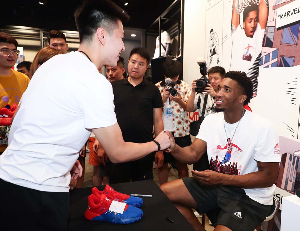 在本次中国行中,米切尔特意安排了新战靴 adidas D.O.N. Issue #1 的签售会,现场盛况可谓人声鼎沸。