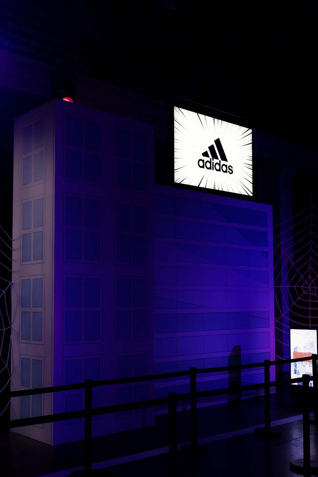 现场别出心裁的布置成「蜘蛛侠米切尔」的纽约街头场景,契合《蜘蛛侠》主题战靴,场景特别有带入感。