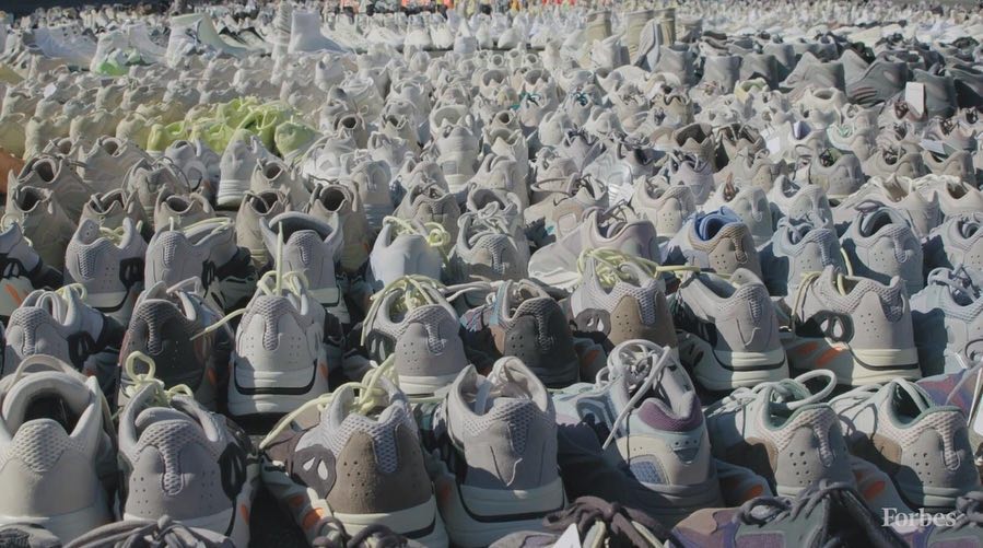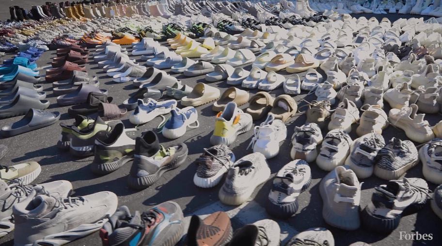 侃爷近期还接受了福布斯的采访,晒出了巨量 Yeezy 存货,其中就包括这双 Yeezy 350 V3。