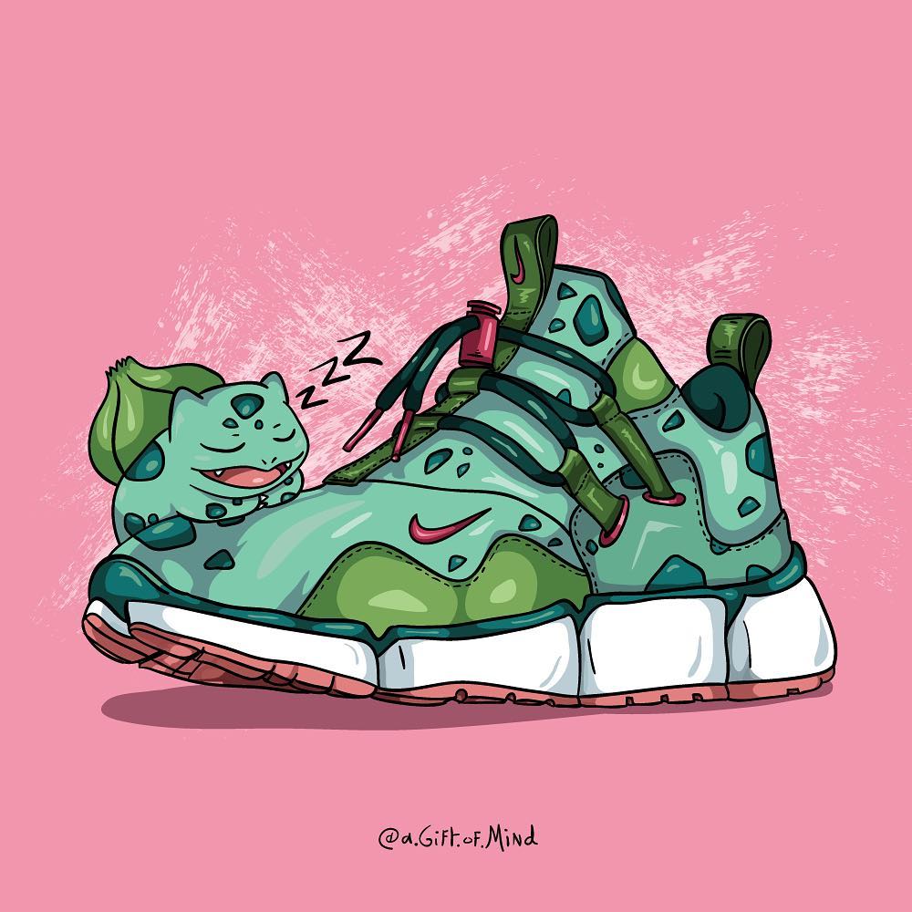 不过知名插画艺术家 J. Well 创作的一些作品,肯定是你心中神奇宝贝球鞋的样子!