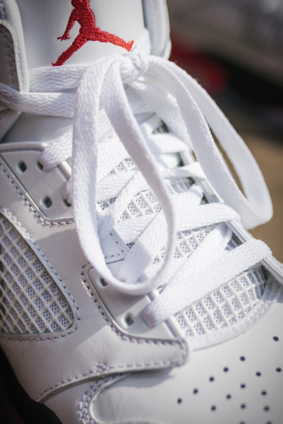 Air Jordan 4、Air Jordan 5 两代的元素也很明显,鞋面中部的剪裁、镂空以及塑料鞋带孔,都来自 Air Jordan 5。