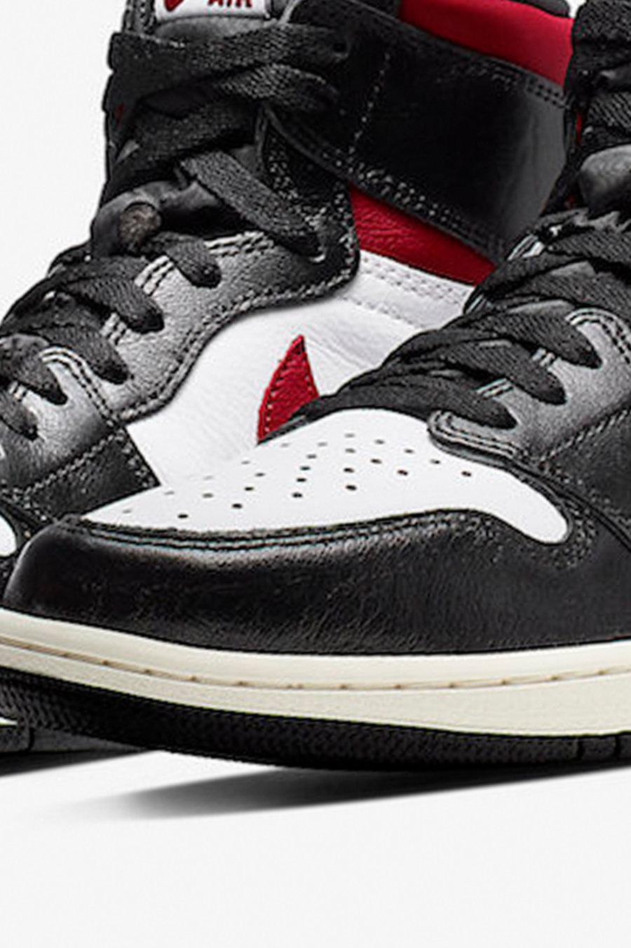 大家最可能忽略的就是它身上的 Air Jordan 1 血统。鞋头处的剪裁和透气孔均与 Air Jordan 1 如出一辙。