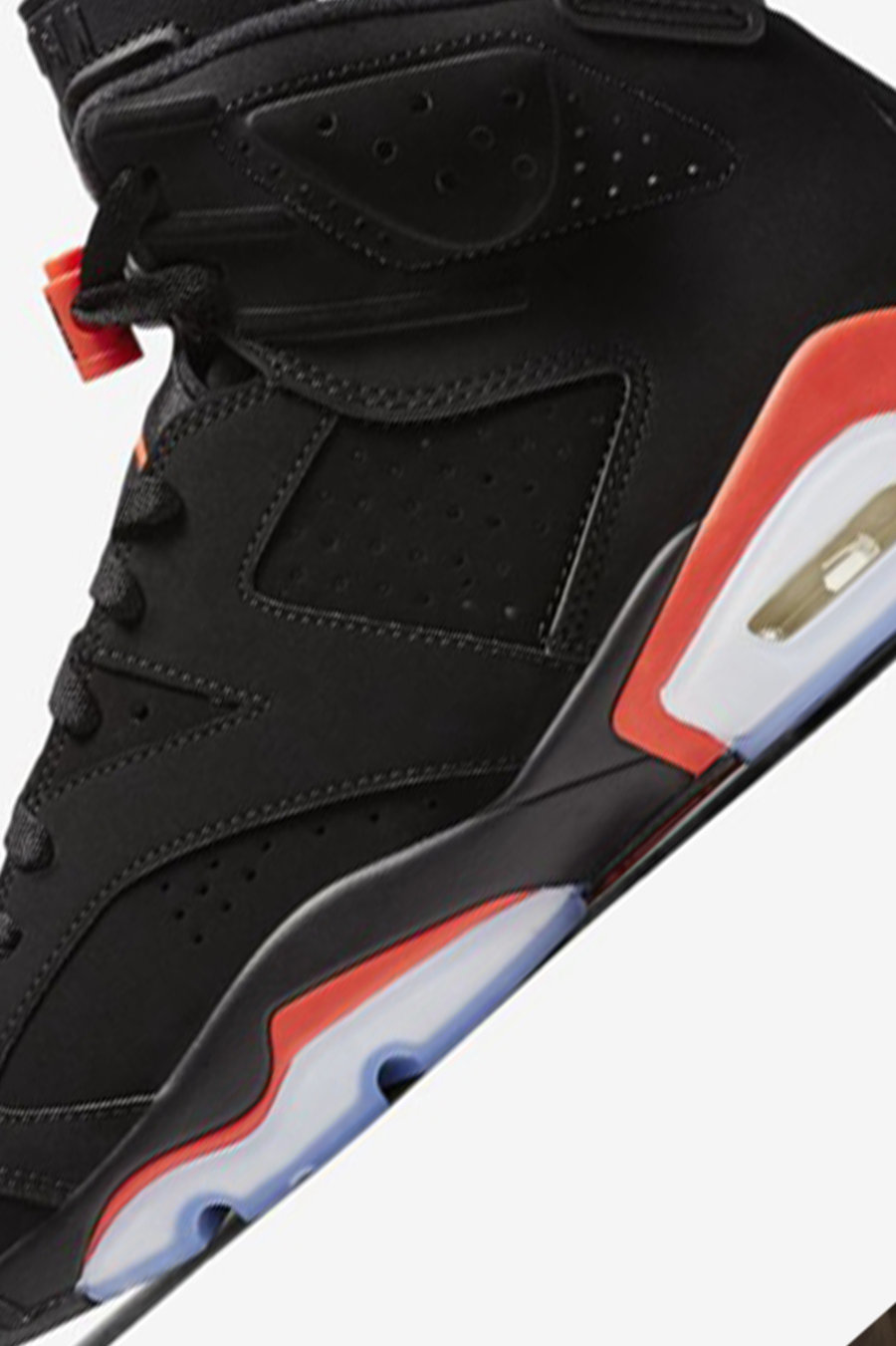 最明显的当属来自 Air Jordan 6 的设计,后跟酷似跑车扰流板的鞋提和中底设计都极具辨识度。