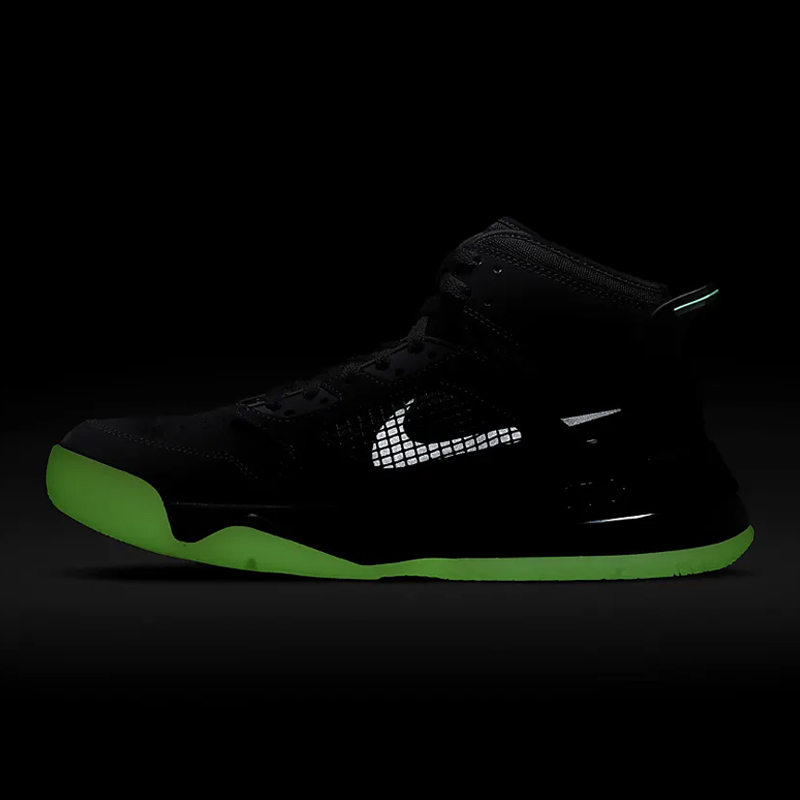 除了小编这款白黑红 Fire Red 配色,官网还有一款黑绿夜光配色,夜晚穿更酷,不妨了解一下!