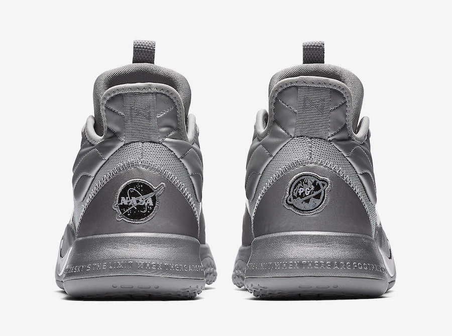 与首发配色的橙色色调不同,这双全新 PG3 “NASA” 采用了太空银色调贯穿,织物面料与带有光泽效果的细节搭配,在营造太空科技氛围的同时,也有不错的视觉层次效果。