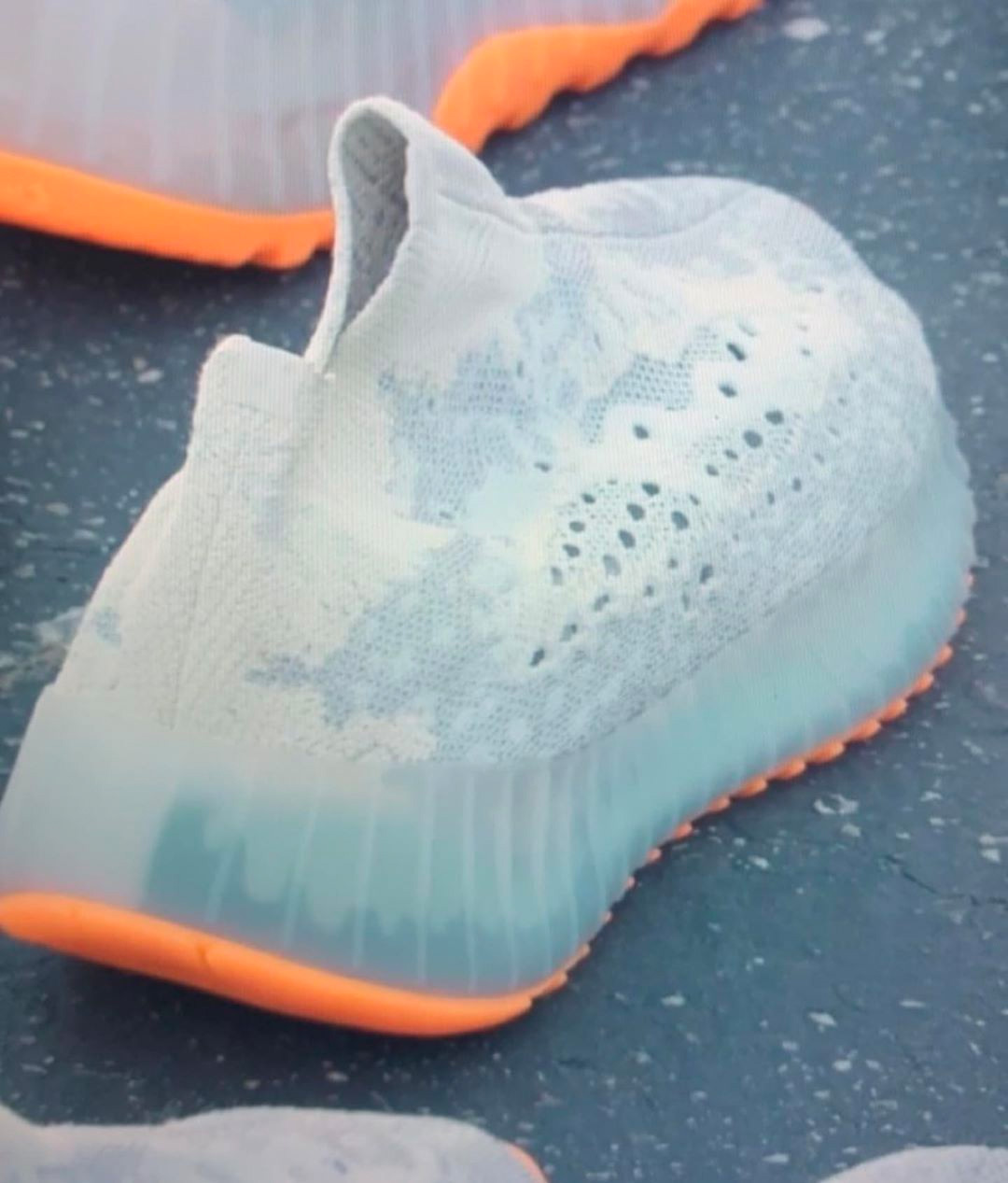侃爷上脚的这款配色也被称为 Yeezy Boost 350 V3 “Alien” 异形配色,斑驳的鞋面纹理之下,依然可以看到带有侧透细节。