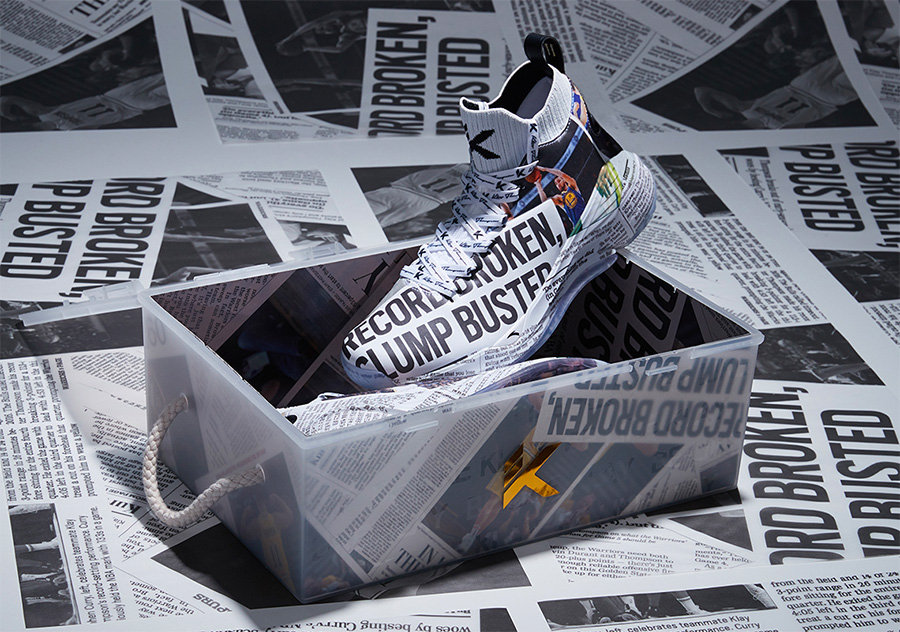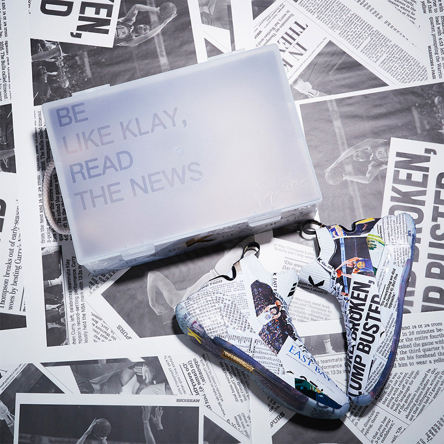 为了庆祝克莱·汤普森同勇士队续约,ANTA 安踏携手湾区当地的报纸《East Bay Times》,以汤神战靴 ANTA KT4 为蓝本,打造了一款极为特别的 “报纸” 配色。