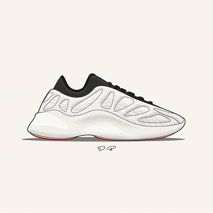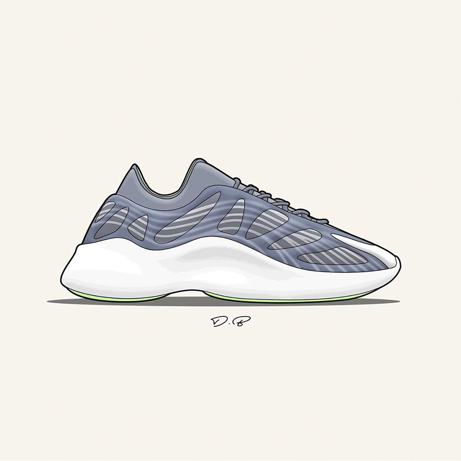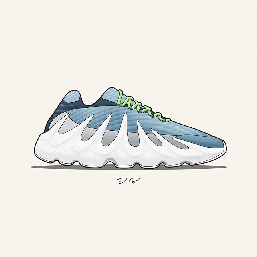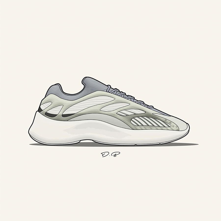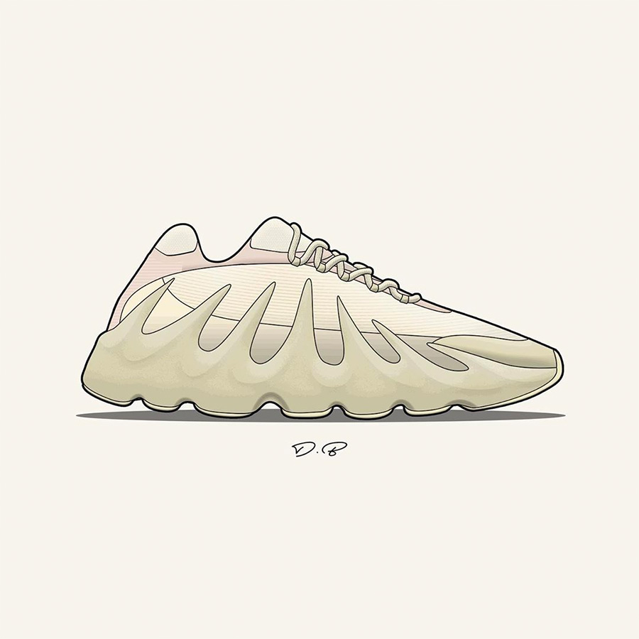 他加班加点的为我们带来了诸多新 Yeezy 样品的插画展示,精美又清晰的展现了这些 Yeezy 新品和 Yeezy 新配色的独特魅力。