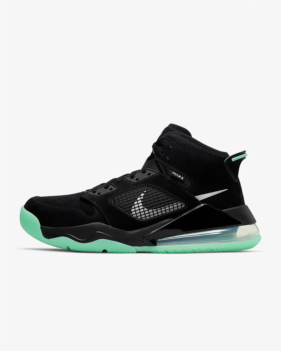 从飞人经典战靴 Air Jordan 1、4、5、6 四代中汲取灵感,将各自的标志性元素融为一体,Jordan Mars 270 还采用了视觉效果和脚感都十分突出的 Air Max 270 大气垫,带来一款复古气息浓厚,又帅气大方的新鞋款。