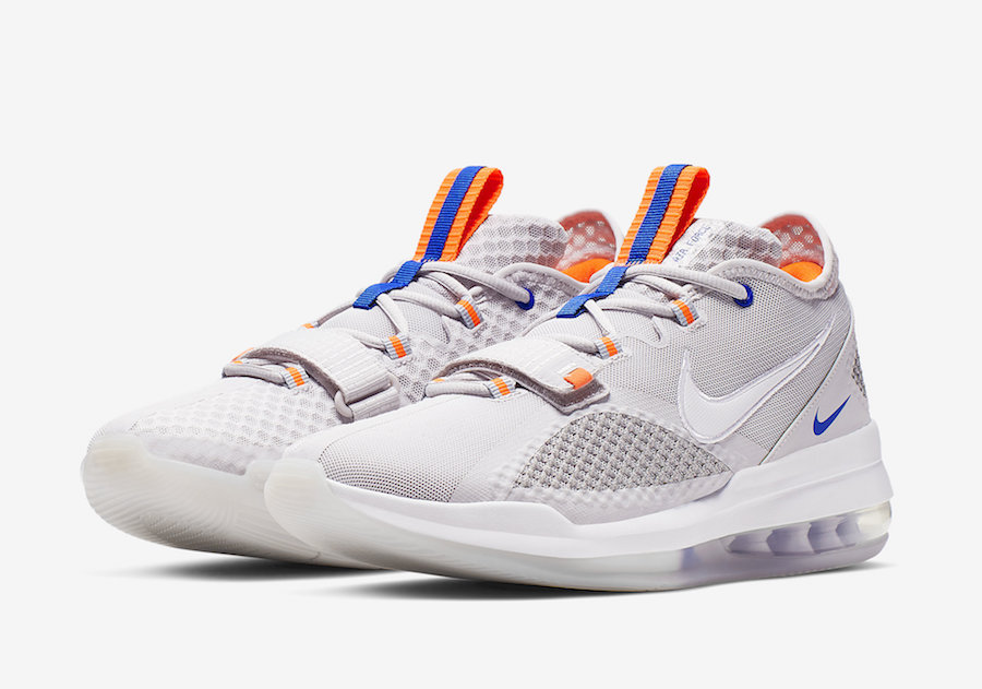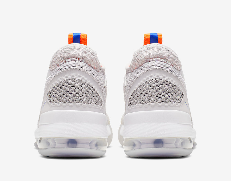 这款全新配色以灰白为主色调,细节处点缀蓝橙两色,颇具尼克斯风格。