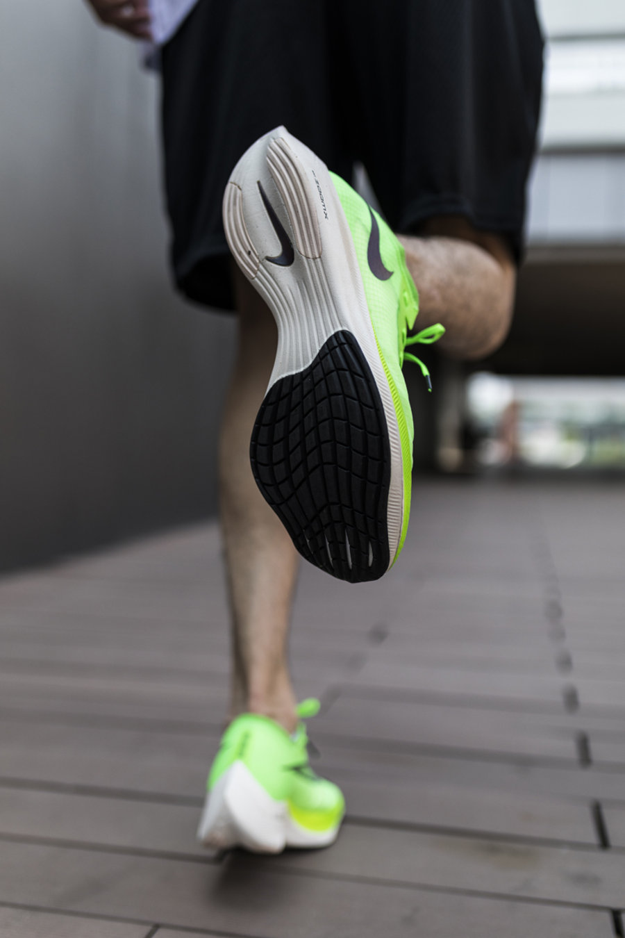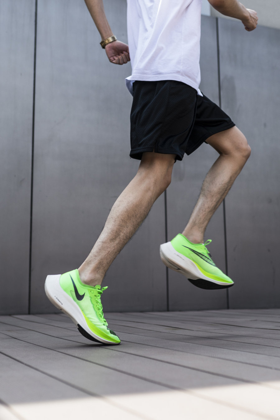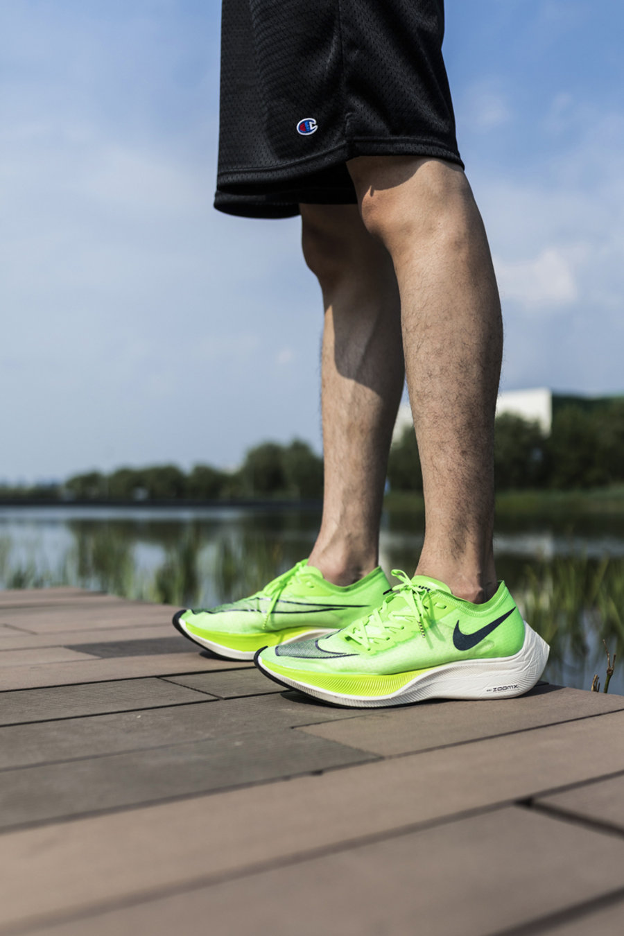 由于碳板的使用和独特的鞋底形状,上脚会有身体向前倾的感觉,真的穿上就想跑。在前掌蹬地的瞬间,能够感受到爆炸般的强烈弹性。