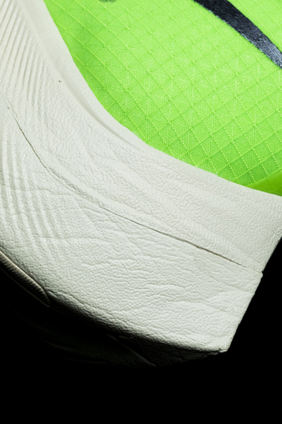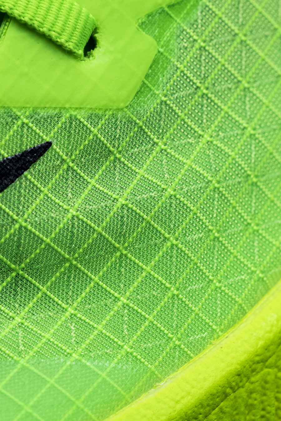 曾有运动员反馈,编织或网布鞋面会因为吸水变得沉重潮湿。这次选用的 Vaporwave 材质就不会吸水,即使在雨天也能保持轻盈与干爽。