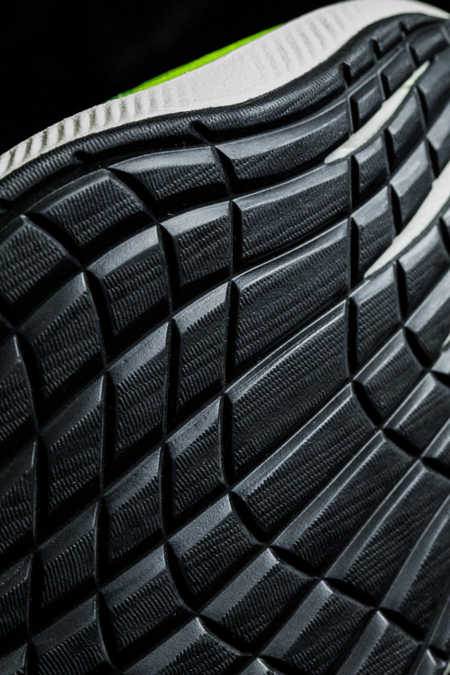 外底方面,前掌完全覆盖黑色橡胶,纹理相比 Vaporfly Elite 有所改变,更加厚实耐用。