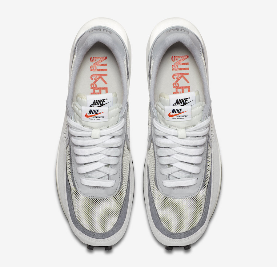sacai 将 Nike 经典鞋款 Waffle Daybreak 和 LDV 巧妙融合,并把鞋舌、Swoosh Logo、中底等多个元素解构,以层叠的方式重塑,呈现出非常独特的结构层次感。