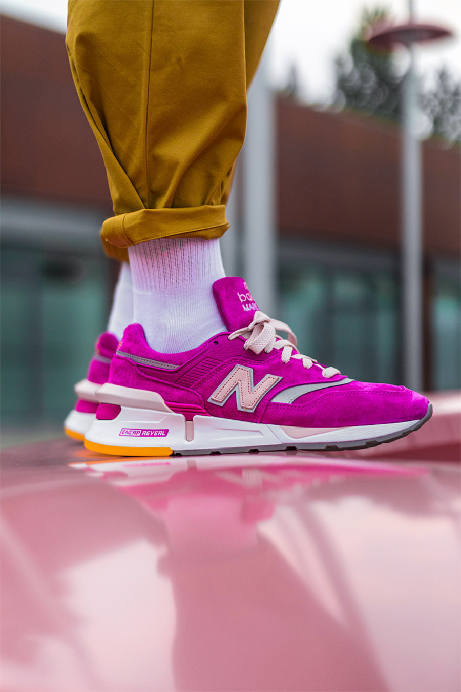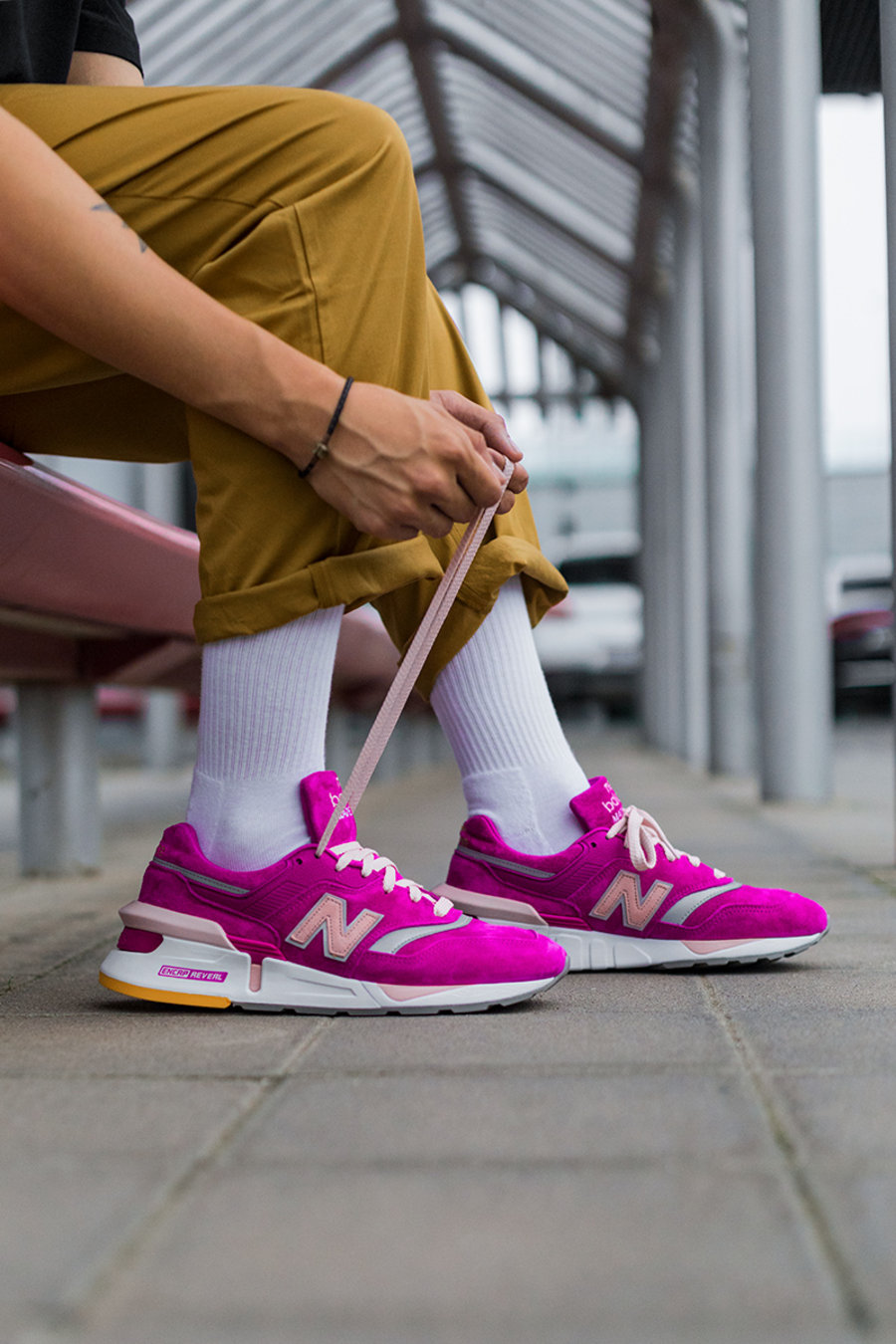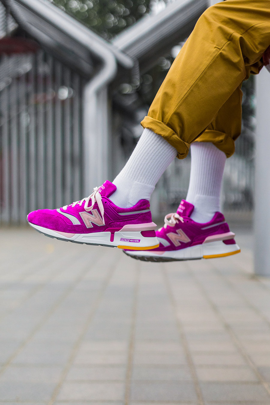 作为对比,小编还换上了卡哇伊专属配色的 New Balance 997S。