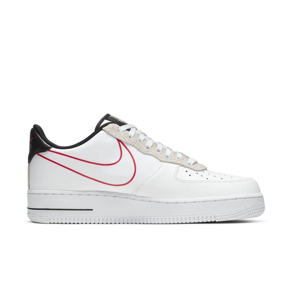 其中 Air Force 1 是设计细节最为丰富的一双,鞋身外侧还有透明 Swoosh 点缀,鞋身内侧印有简单的红色勾勒 Swoosh,翻毛皮打造的两侧鞋领还为整体带来解构元素。