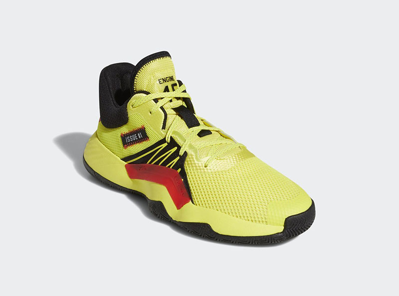 除此之外,另外一款名在黄、黑、红呈现的鞋身之上,鞋舌点缀 Engine 45 字样,与此前米切尔专属的蜘蛛侠个人 Logo 有所不同,视觉表现更加活力大胆!