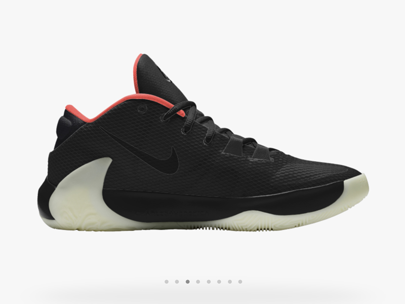 小编也第一时间进入 Nike 官网,发现 Zoom Freak 1 在国区也能定制了。点击颜色选项,发现有粉红色内衬和夜光外底可选,真的可以打造出 Air Yeezy 配色。