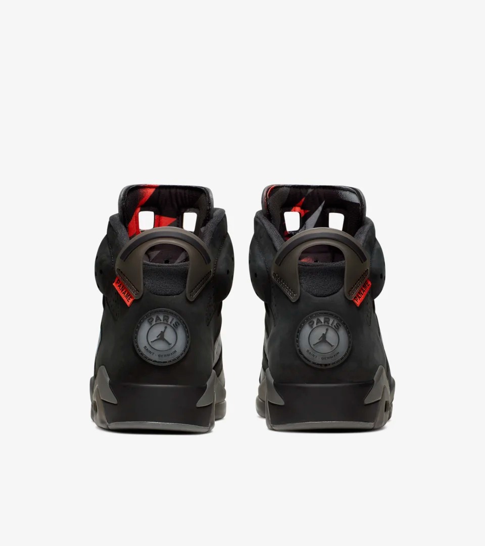 后跟鞋提外侧红色标签绣有「PANAM」字样,鞋跟处 Paris 环绕的 Jumpman Logo 特别采用半透明材质打造,搭配黑色半透明鞋提与中底细节,彰显独特的联名身份。