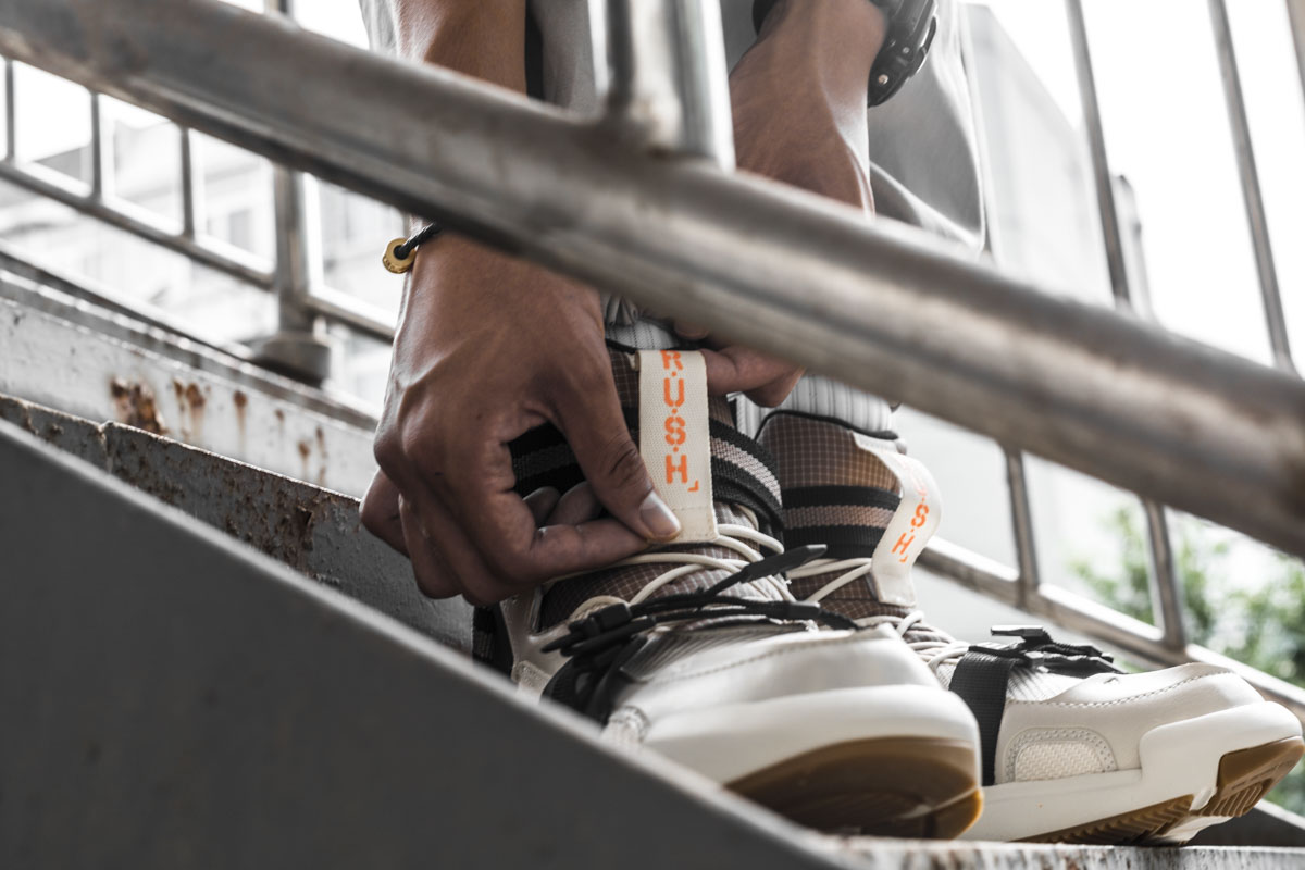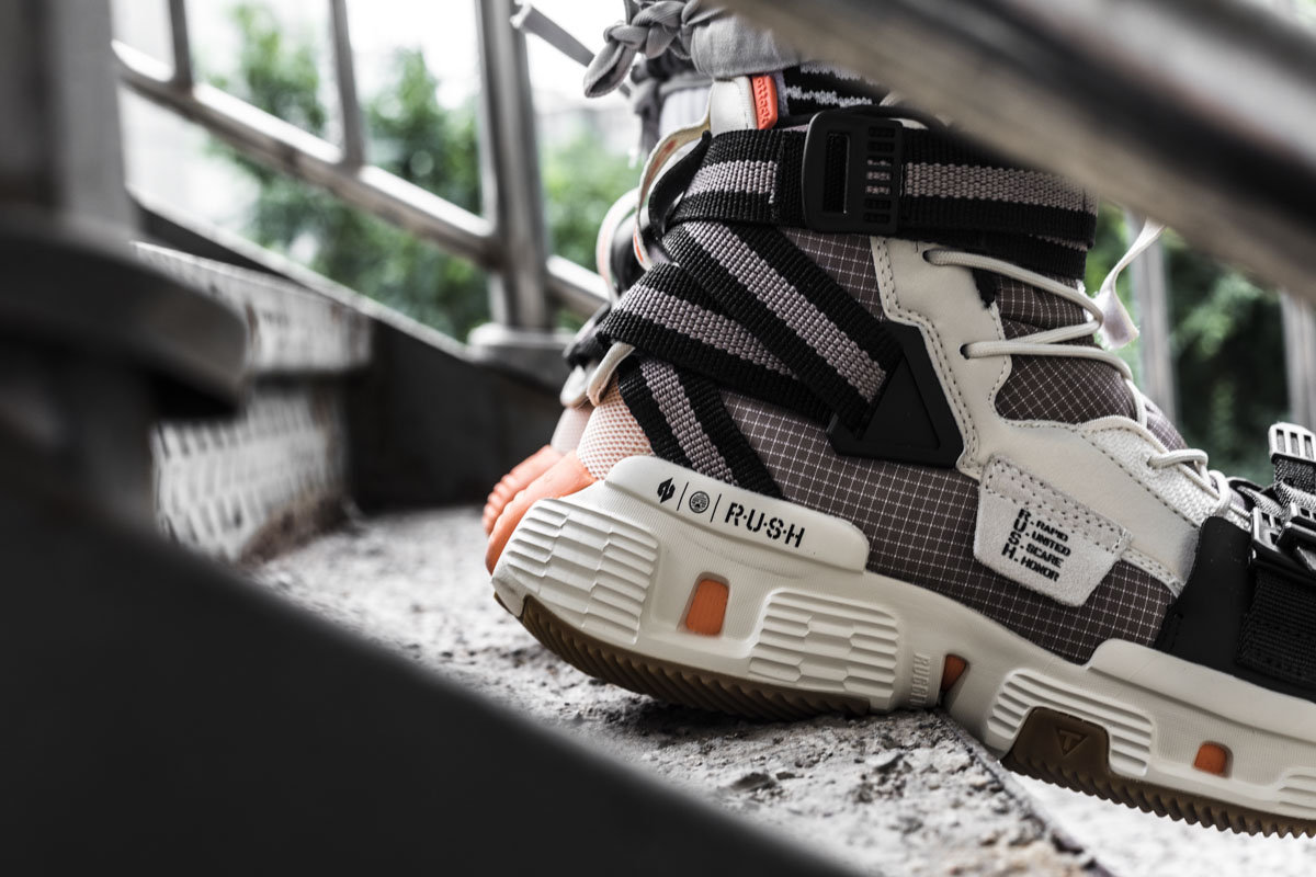 与鞋舌上的 Rush 标签搭配,机能气质呈现的淋漓尽致。