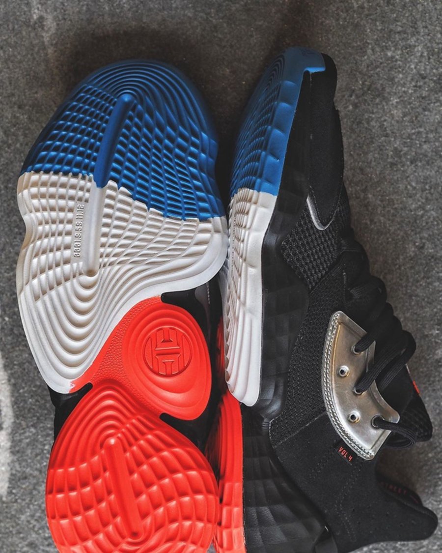 哈登最新一代签名战靴 adidas Harden Vol.4 继浅粉配色曝光后,近日一款更具视觉冲击的新配色浮现网络,让我们可以近距离对外观和性能配置一探究竟!