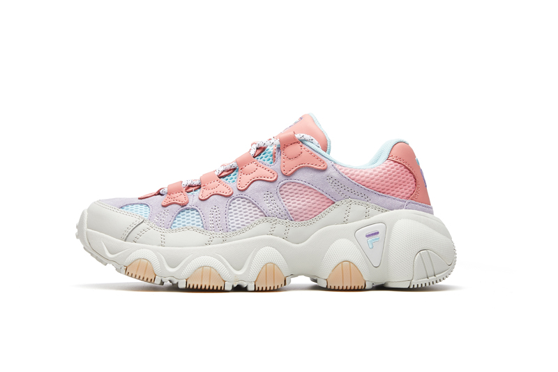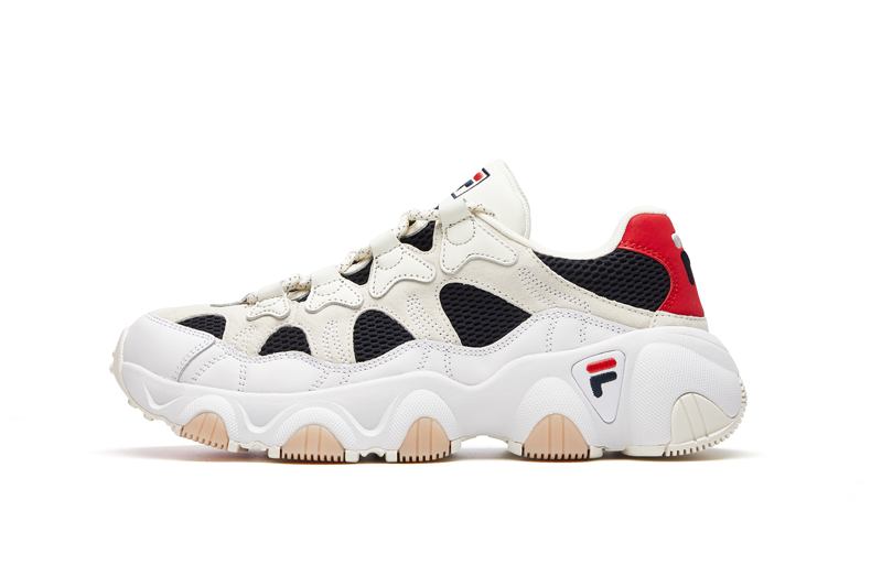 此番 FILA FUSION 重塑经典,在夸张流线型设计的基础之上进行经典再造,根据当下流行调整鞋底廓形,塑造极具个性和现代感的宽大鞋底。