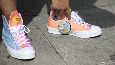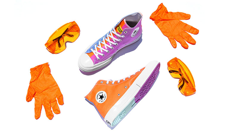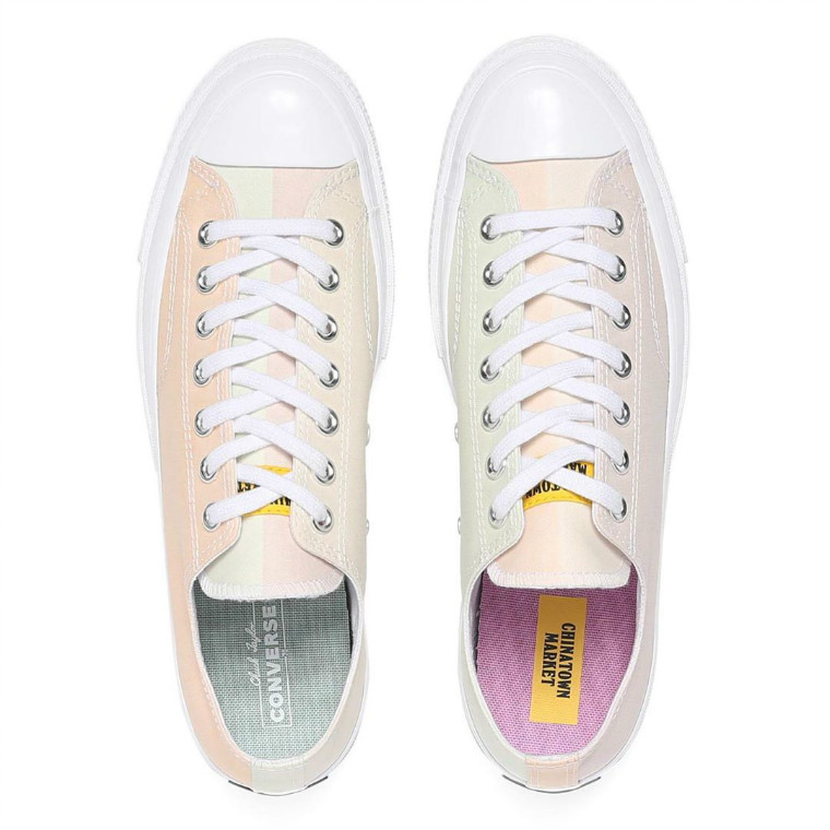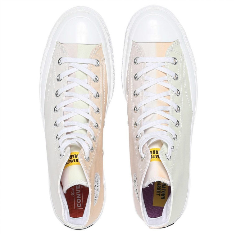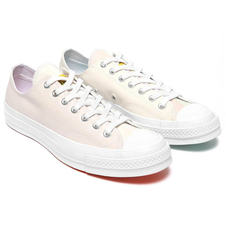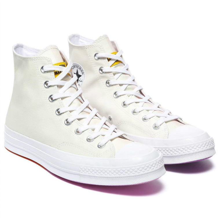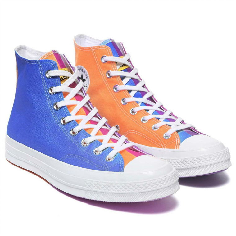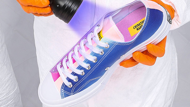 分别推出 Chunk 70 高帮和低帮两款鞋型,采用不对撞色鞋面设计,最大亮点在于鞋身颠覆性的采用特殊感光帆布打造,根据光照时间、强度等不同的紫外线环境而发生色彩变幻。