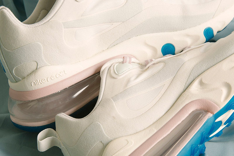 将 Nike 两大全新缓震科技合二为一,Nike Air Max 270 React 可算是近期新品中,功能性超猛的一双! 眼前这双全新配色则一改原有活力气氛,采用米白为主色的热熔鞋身呈现,细节辅以粉色及冰蓝点缀,素雅气氛更适宜日常休闲穿着! 前掌 React 材质柔软且支撑出色,后掌 Air Max 270 则提供更为澎湃的缓震表现! 颜值与脚感都可圈可点,将于近期在官网上架发售,定价 ¥1199 RMB,感兴趣的小伙伴不妨多加留意! image:livestock