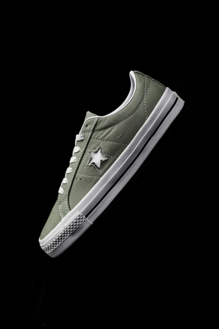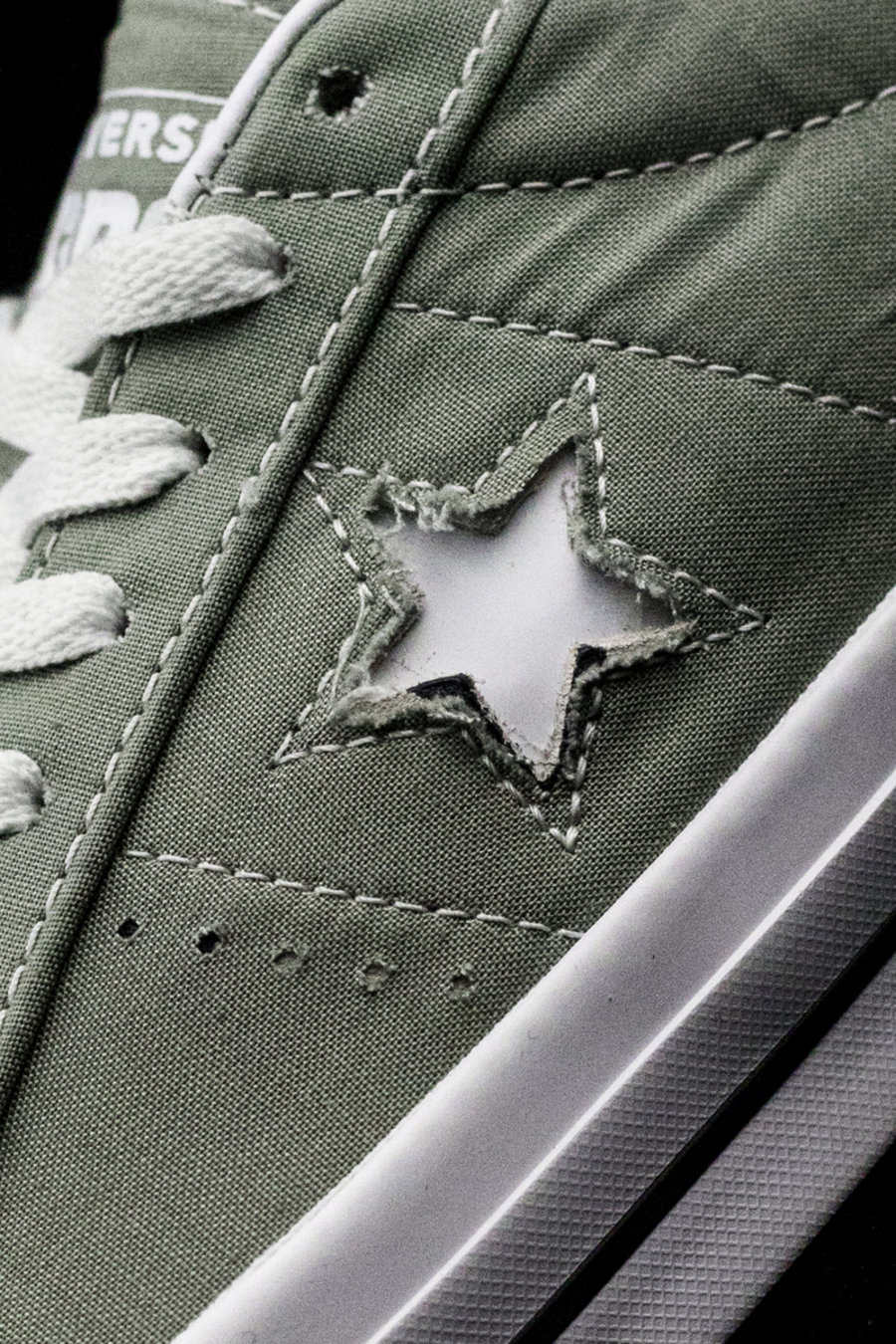 鞋身中部标志性的镂空五角星,可以看出鞋面的多层材质。虽然未刮时看起来像是帆布鞋,其实鞋面使用了厚实的皮革材料。