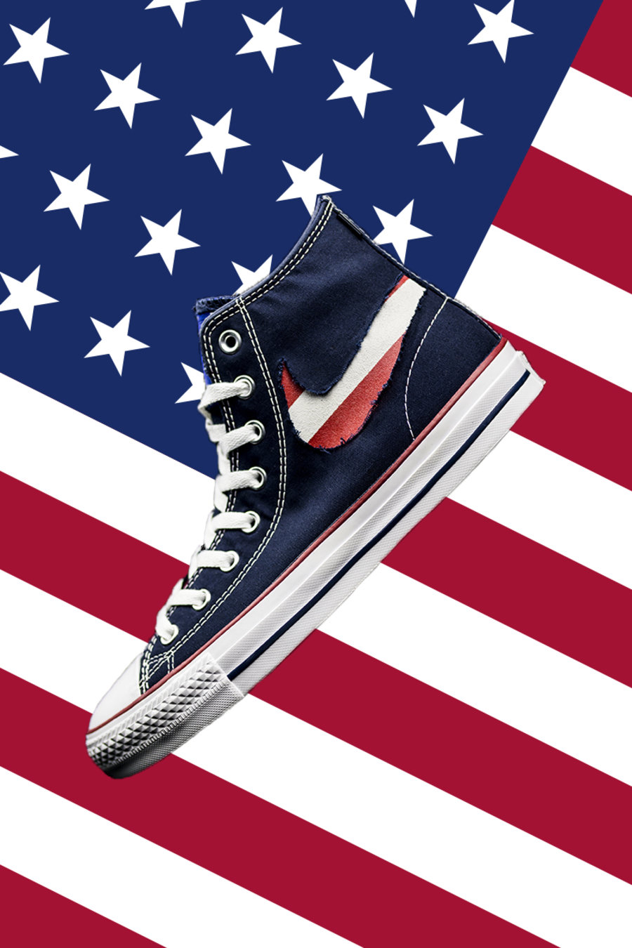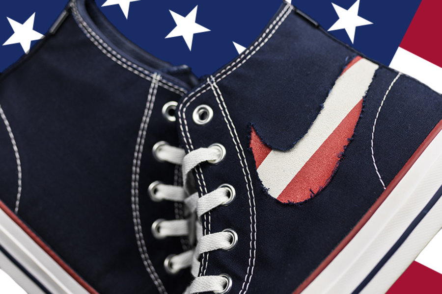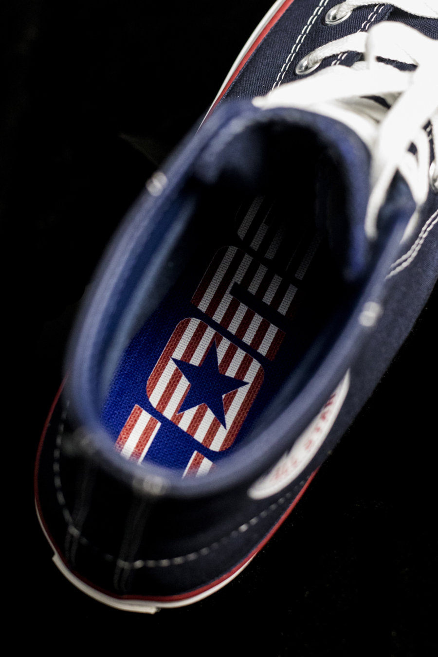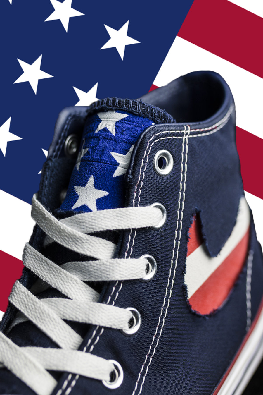 而刮开鞋舌后即可看到蓝底白星,完整展现出这款配色的美国国旗主题。
