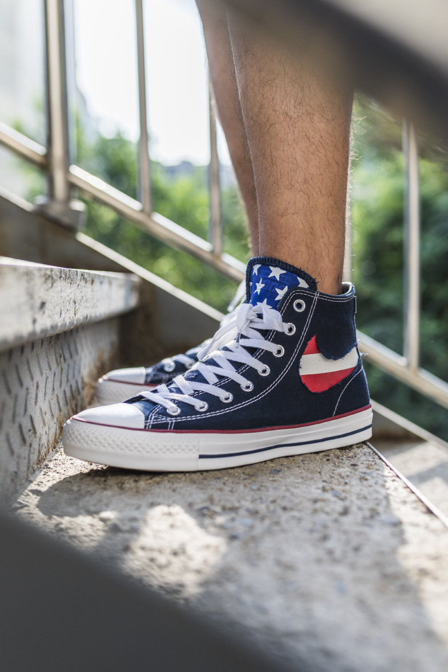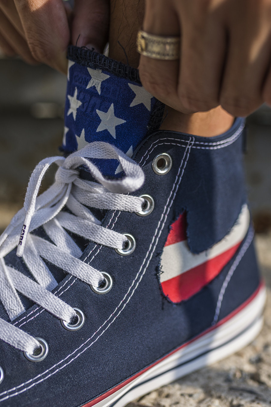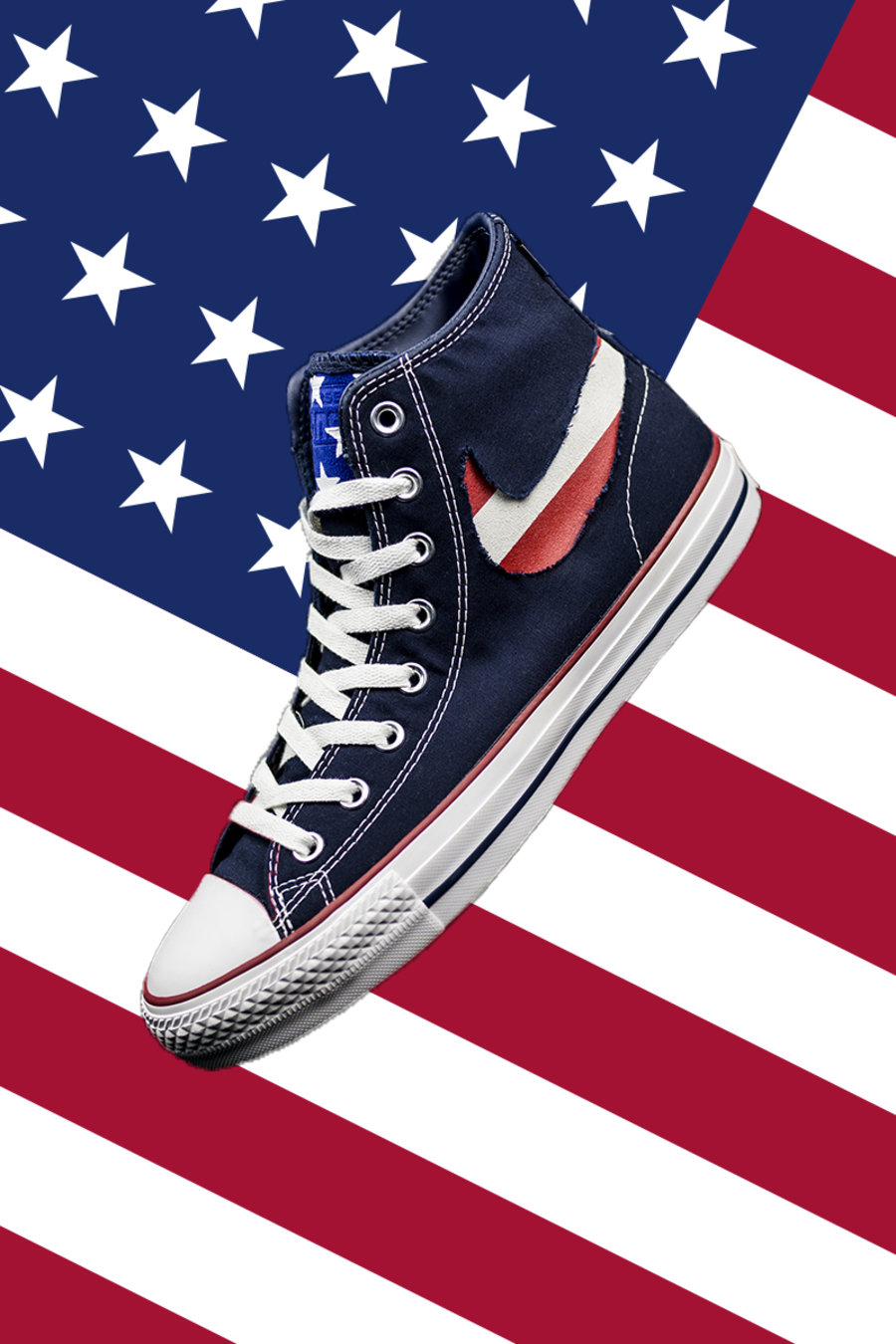 而刮开鞋舌后即可看到蓝底白星,完整展现出这款配色的美国国旗主题。