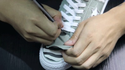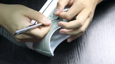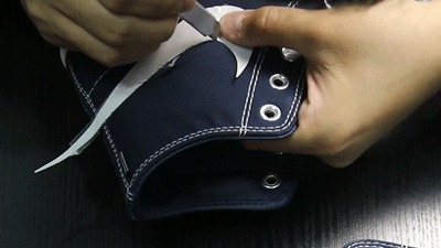 但要小心第一刀不要太用力,否则容易损伤内层鞋面。