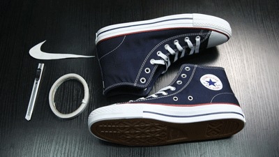 Chuck Taylor All Star 以深蓝色鞋面搭配白色鞋底和红色描边点缀,年代感十足,相信是大家心中帆布鞋最经典的样子。