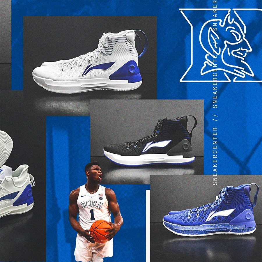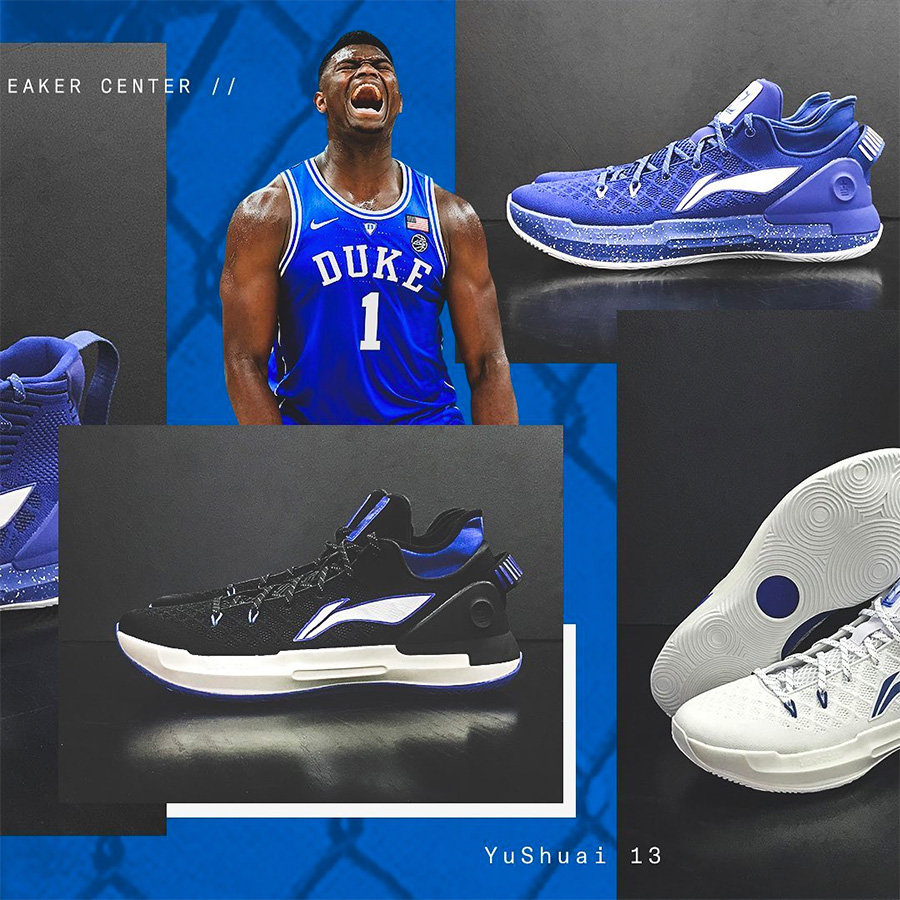 不仅仅是开出了 1900 万的天价,李宁还为 Zion 量身打造了多个 PE 鞋款,分别在音速 7 和驭帅 13 鞋型上为其打造了 Duke 配色。