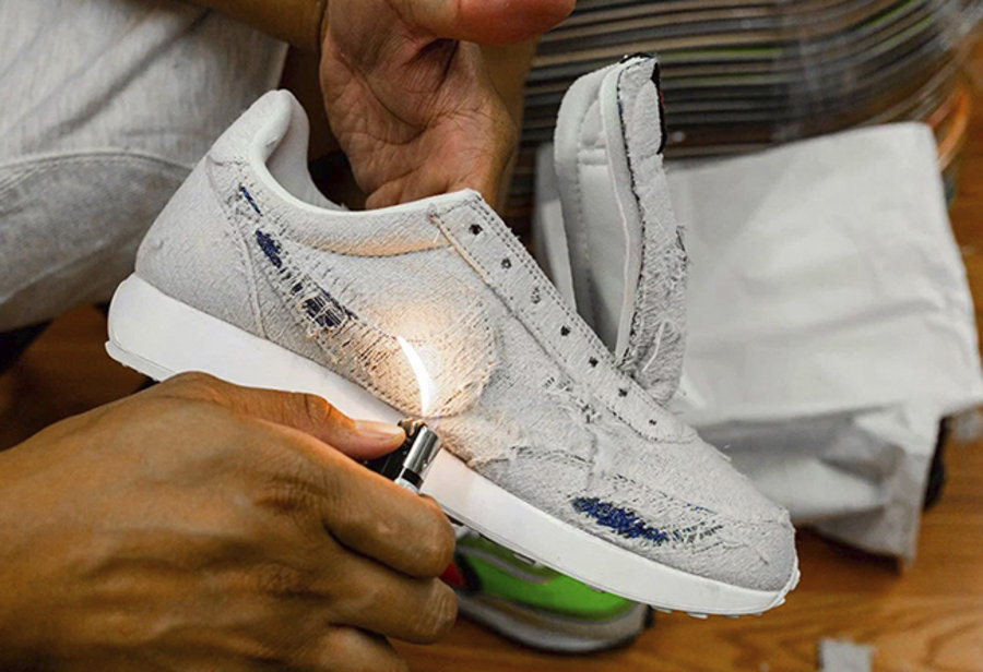鞋面材质与之前两款相同,按照之前两款的隐藏设计,鞋面外层的麻布材质可以撕开或烧开,内层则为单宁布料。
