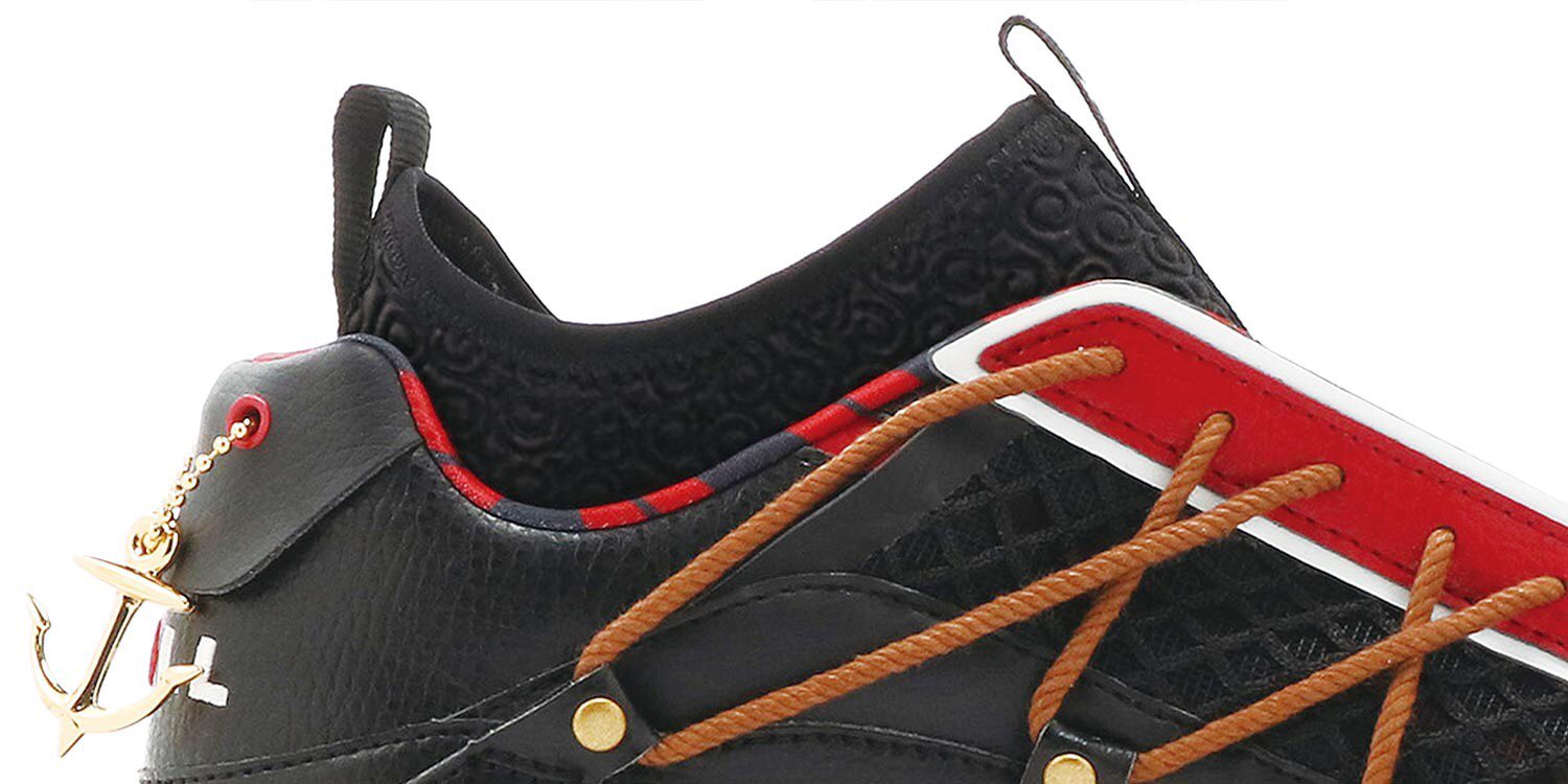 贯穿鞋身的夸张鞋带系统,象征着桑尼号的船帆与绳结等造型。