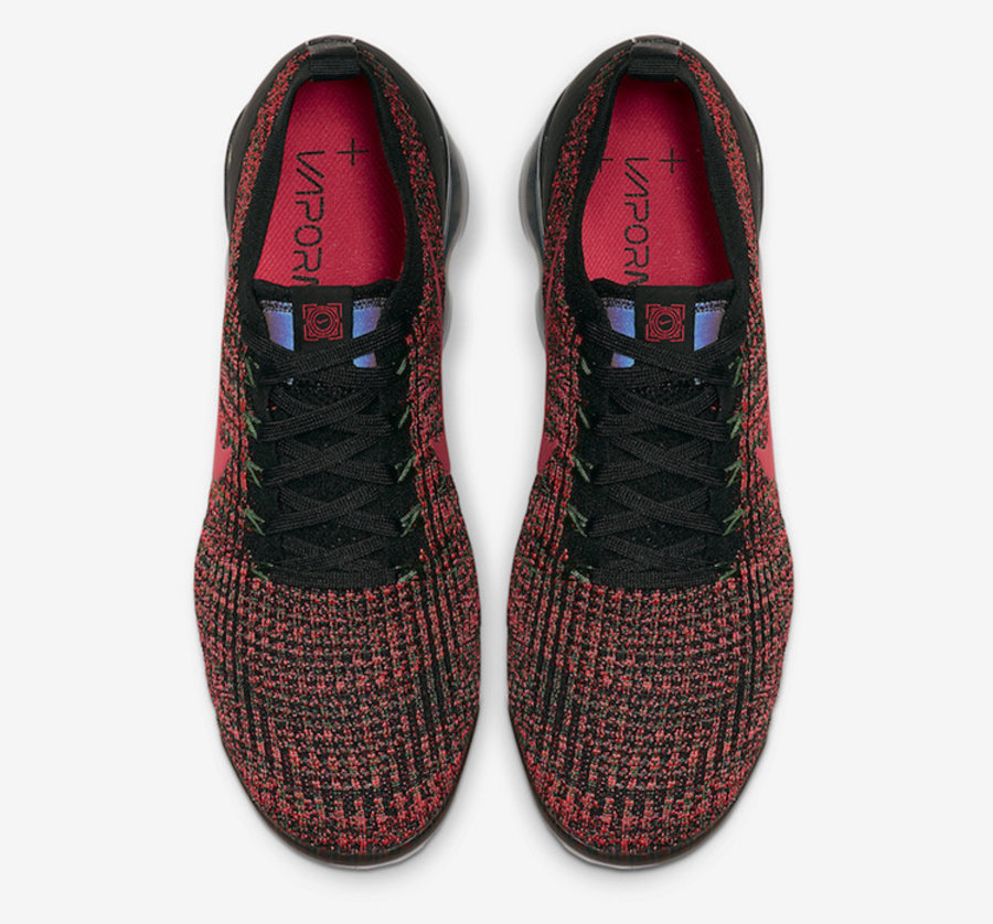 Flyknit 鞋面由红色、黑色及绿色混合而成,领口、鞋舌、鞋带及后跟辅以黑色修饰。侧身搭配更为醒目的红色 Swoosh 标志,与鞋身融为一体。