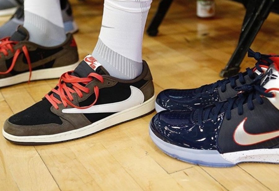 即使鞋王同时上脚反钩 Air Jordan 1 Low,这双 Zoom Kobe 4 的光芒也丝毫没有减弱。
