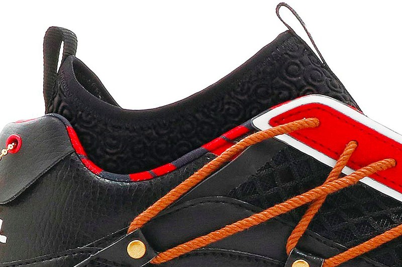 鞋款设计灵感源自动画中主角的海盗船「千阳号」,鞋面以深棕色与红色搭配。