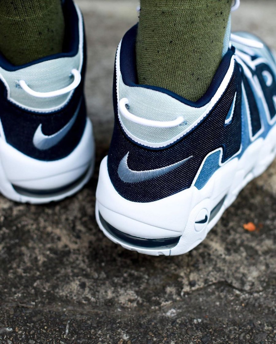 在本月刚刚曝光的单宁 Nike Air More Uptempo 96 QS 将于后天发售,近日,又有全新上脚实拍再度释出。