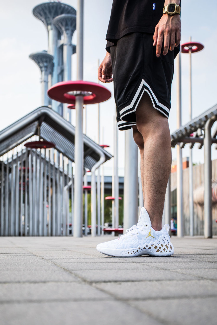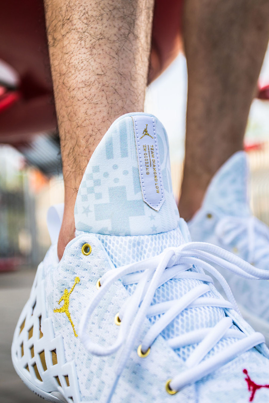 后跟的 Jumpman Logo 以醒目的金色点缀,象征着胜利的荣耀,再次在细节中体现出中国元素。
