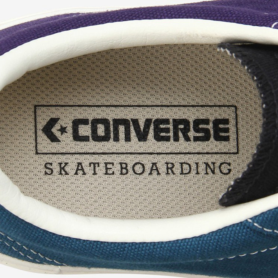 其中一双为红、绿色搭配,侧身带有 Converse 经典白色星箭 Logo,同时鞋底周围环绕标志性黑线,搭配黑、白双色鞋带,整双鞋看起来个性十足。另一双为海军蓝色与紫色撞色搭配,想必上脚效果也将获得不俗的评价。