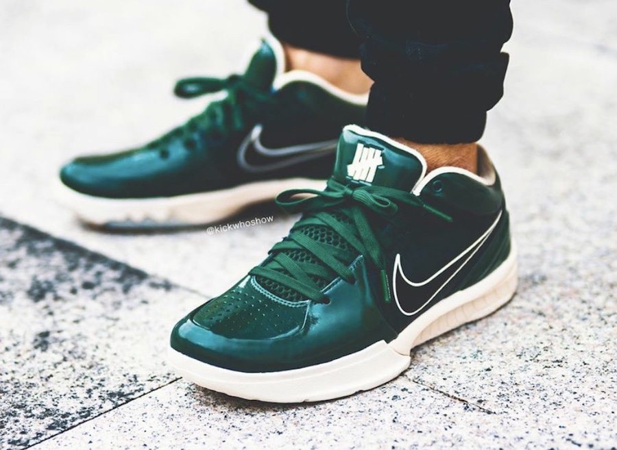 今年科比日的重头戏,莫属将于当天正式发售的 UNDEFEATED x Nike Kobe 4 Protro,四款中代表雄鹿的白绿配色已有上脚图释出,快来看看吧。