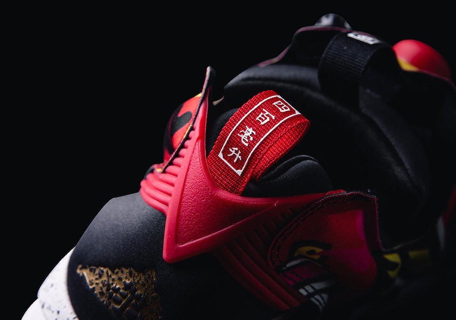 鞋款以黑色作为底色,最具看点的就是 Pump 气囊部分印有中国传统布艺和剪纸中的老虎图案。