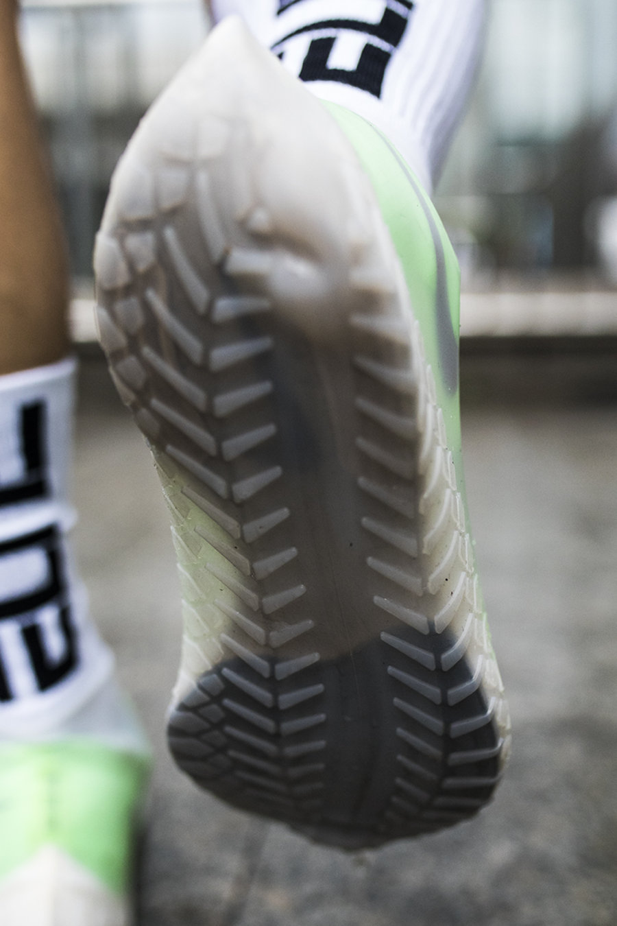 MMW 这款 V 底主要依靠较厚的纹路带来出众耐磨性与一定的防水能力,踩个小水坑不用担心鞋子。
